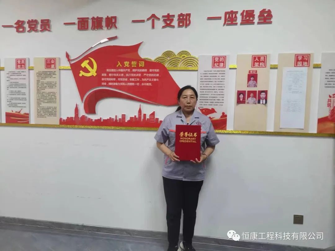 為激勵廣大共產黨員、黨務工作者,履職盡責,爭當先鋒做表率,為黨旗增輝,為企業獻計,再接再厲,經恒康科技黨支部推薦,中共保定市非公有制經濟組織委員會授予何惠榮同志為優秀共產黨員,并頒發榮譽證書。